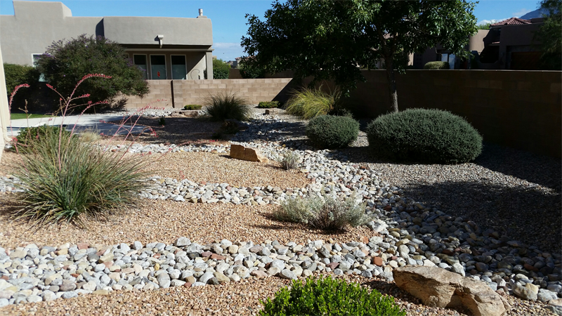 Here at Landscapers of Enchantment we offer a full line of landscaping services whether you need your weeds pulled, trash hauled, drip systems repaired, Xeriscaping, lawn fertalizing, tree pruning, tree removal or do you have an old tree stump you want removed? Then we are the landscapers for you. Their are no jobs to big or to small. If your looking to have your lawn mowed, bushes trimmed or just some debris removed on a regular basis? Ask about our home and commercial lawn maintenance that will leave your home or business beautiful year round. Click on any of the examples below to view our gallery! |